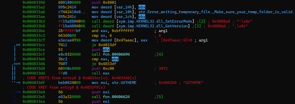 როდესაც KERNEL32.dll ფაილიდან SetErrorMode ფუნქცია მორჩება, პირდაპირ მეორე ფუნქცია იწყებს მოქმედებას, რომელიც არის GetVerson.